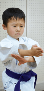 松濤明武会では、大きな声での挨拶や返事、目を見て話を聞くこと、集中力の持続など 「礼儀・礼節」を身につけることを一番に重んじています。武道だからこそ学ぶことのできる 「心の教育」と「人格形成」を大切にし、稽古を行います。