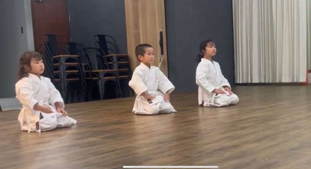 文頭にも記載しましたがMEIBUキッズ空手教室では【あいさつから始める、強くて優しい心づくり】ことを念頭にからだと心を強くすることを、しっかり考え日々生徒たちと稽古に励んでおります。